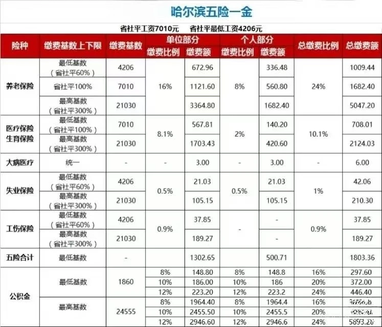 ##哈尔滨五险一金#五险一金缴纳比例 #五险一金缴费