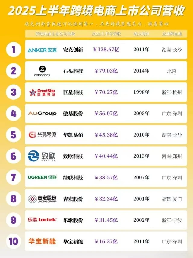 2025上半年跨境电商上市公司营收TOP10admin2025年9月23日解决方案 2025上半年跨境电商上市公司企业营收TOP10!安克创新营收破百亿位列第一,石头科技紧随其后,巨星科技第三,傲基股份位列第四,深圳3家跨境电商上市公司上榜#排行榜 #企业#跨境电商#上市公司 #跨境#安克创新#石头科技#深圳# 上一页 文章 亚马逊如何利用AI调广告 下一页 文章 跨境人必看!3步吃透物流+税务业务链